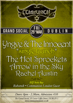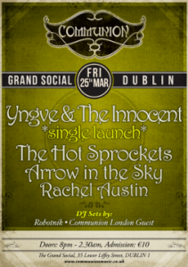 There will be the likes of Yngve & The Innocent, Hot Sprockets , Arrow In The Sky and Rachel Austin. The gig is on Friday March 25th and doors are at 8pm.