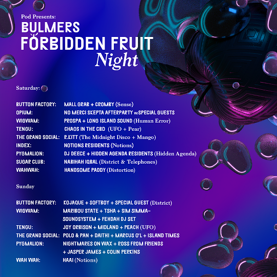 Be sure to grab your tickets fast as these exclusive after-parties are one hot ticket and ALWAYS sell out! Remember, you can ONLY buy your tickets to Forbidden Fruit Nights at the Forbidden Fruit Festival site over the weekend.