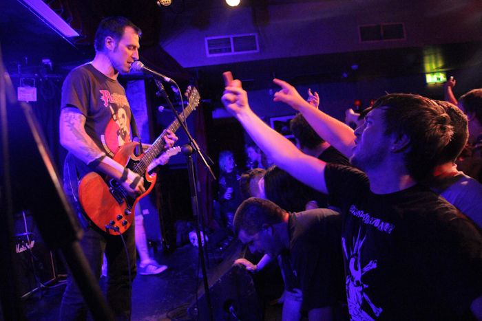 Stza joined the rest of Chewing on Tinfoil on stage to play a packed set of Choking Victim songs, and the crowd went nuts. They apologised for not having had a lot of time to rehearse, but they’d pulled together pretty tight, really fast. Not that it would have mattered much if they weren’t, most of the crowd were just delighted to be dancing and singing along to songs they probably never expected to hear live. The show climaxed with an “encore” (they didn’t actually bother to leave) of three of Choking Victim’s most popular songs, with an almost constant stream of crowd-surfers diving off the stage.