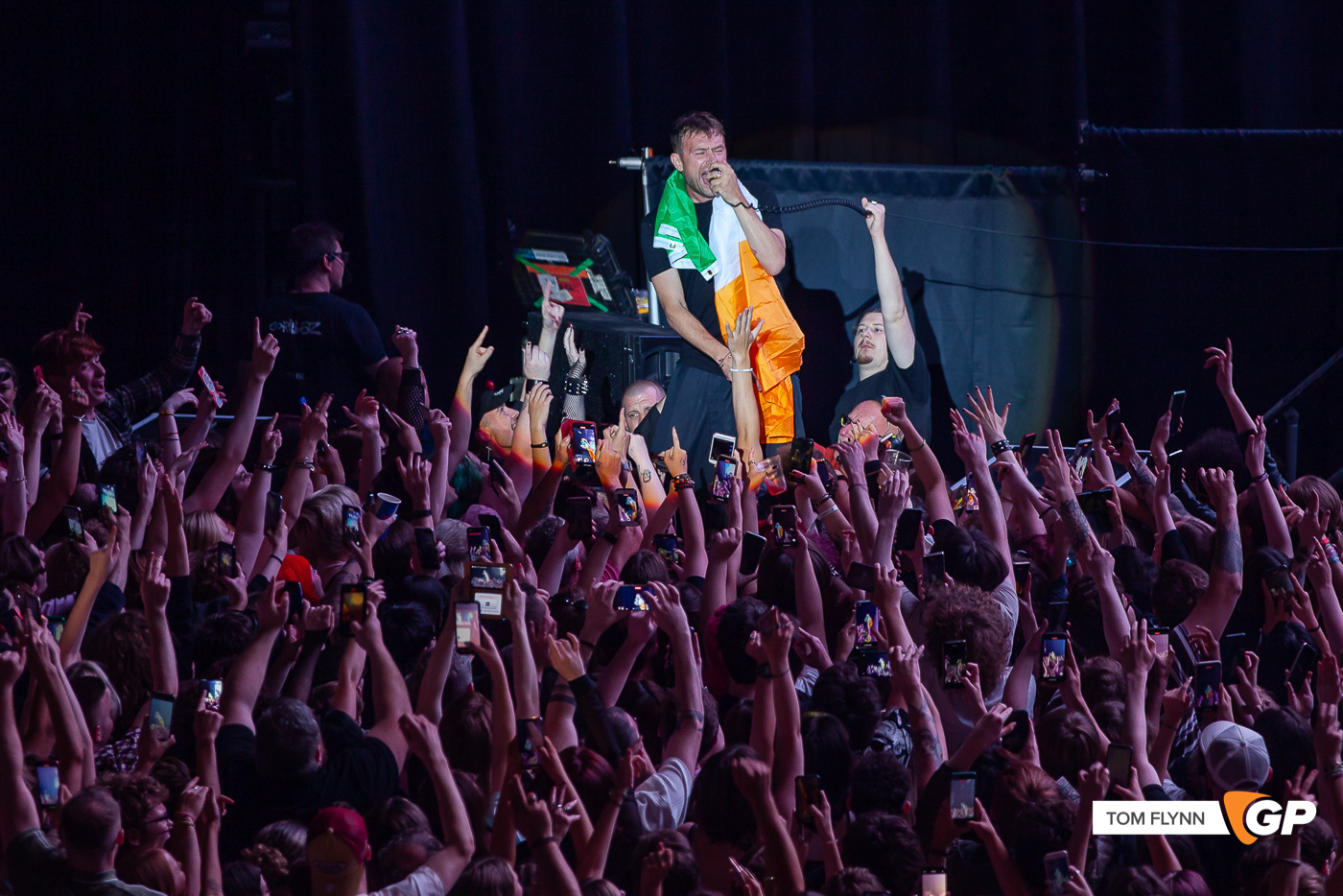 Last Living Souls is almost church-like in it’s delivery, the quintet of backing singers sublime as they are throughout, an absolutely integral reason as to why Gorillaz are such a compelling live proposition. Tranz is another rip roarer as Albarn makes his first foray in to the audience draped in an Irish tricolour, which he says he can wear as he’s 30% Irish.