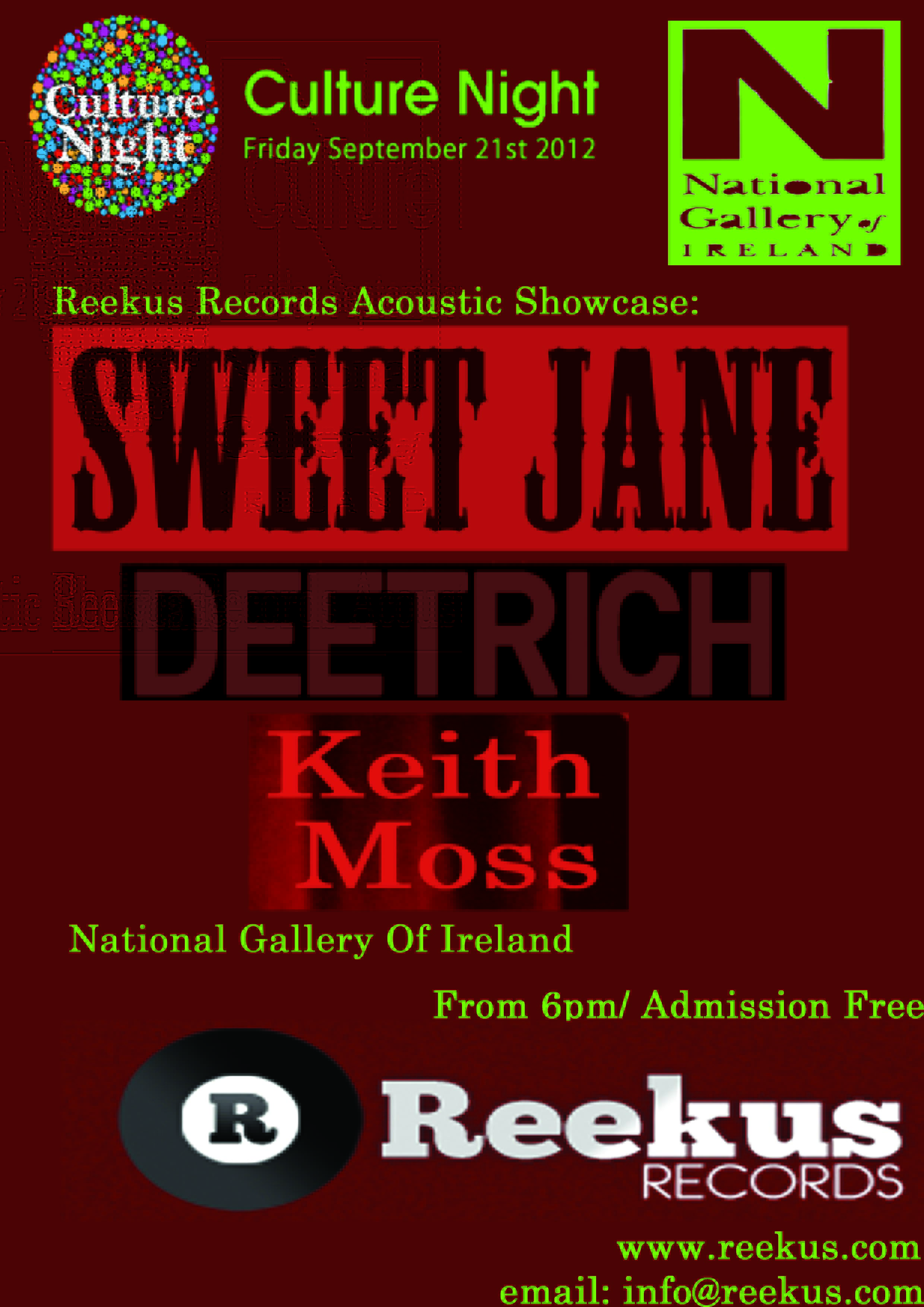 Our friends over at Reekus Records have todya announced an acoustic showcase in conjunction with the National Gallery of Ireland. The show is to be a special acoustic showcase as part of Culture Night 2012.