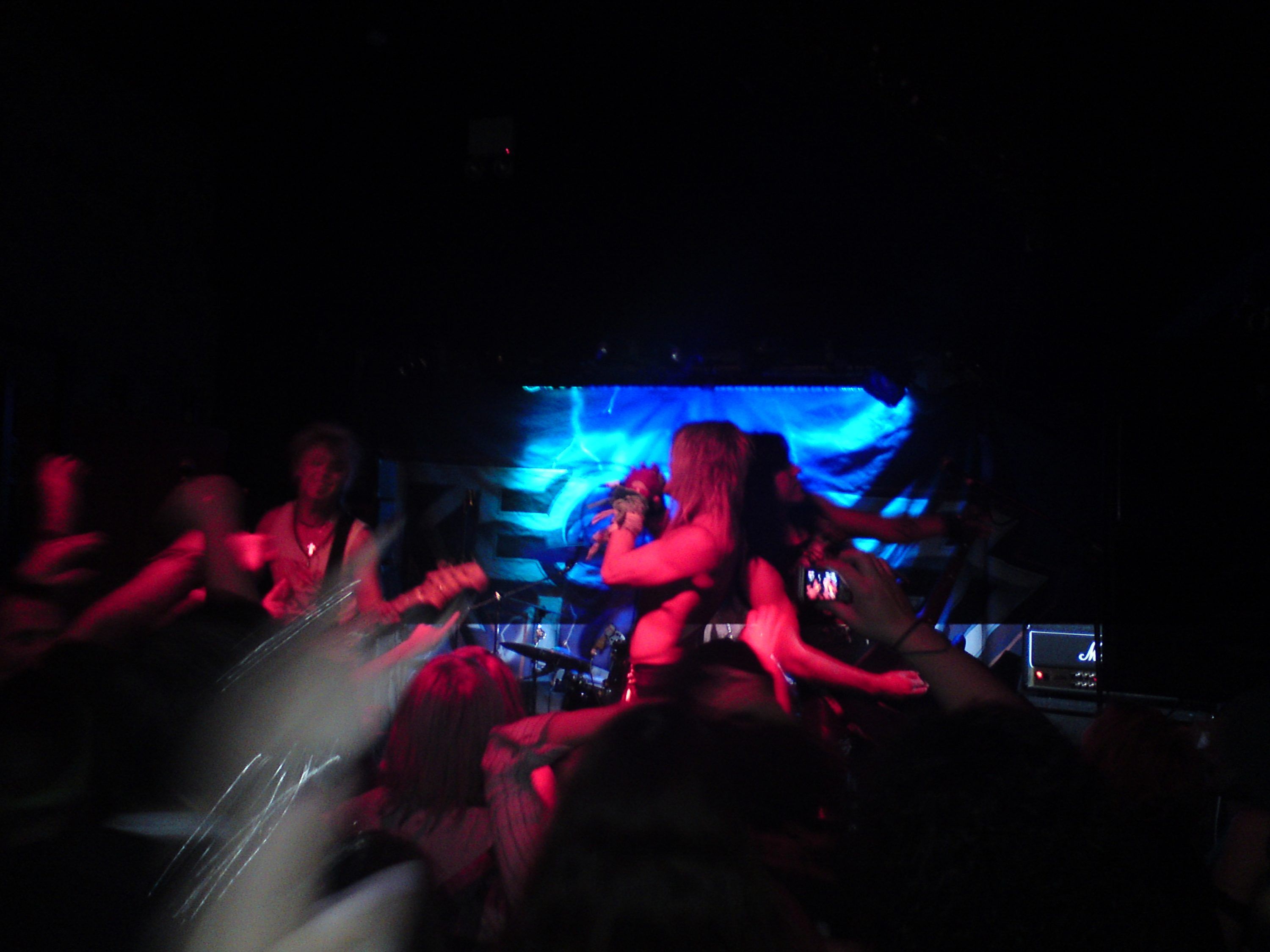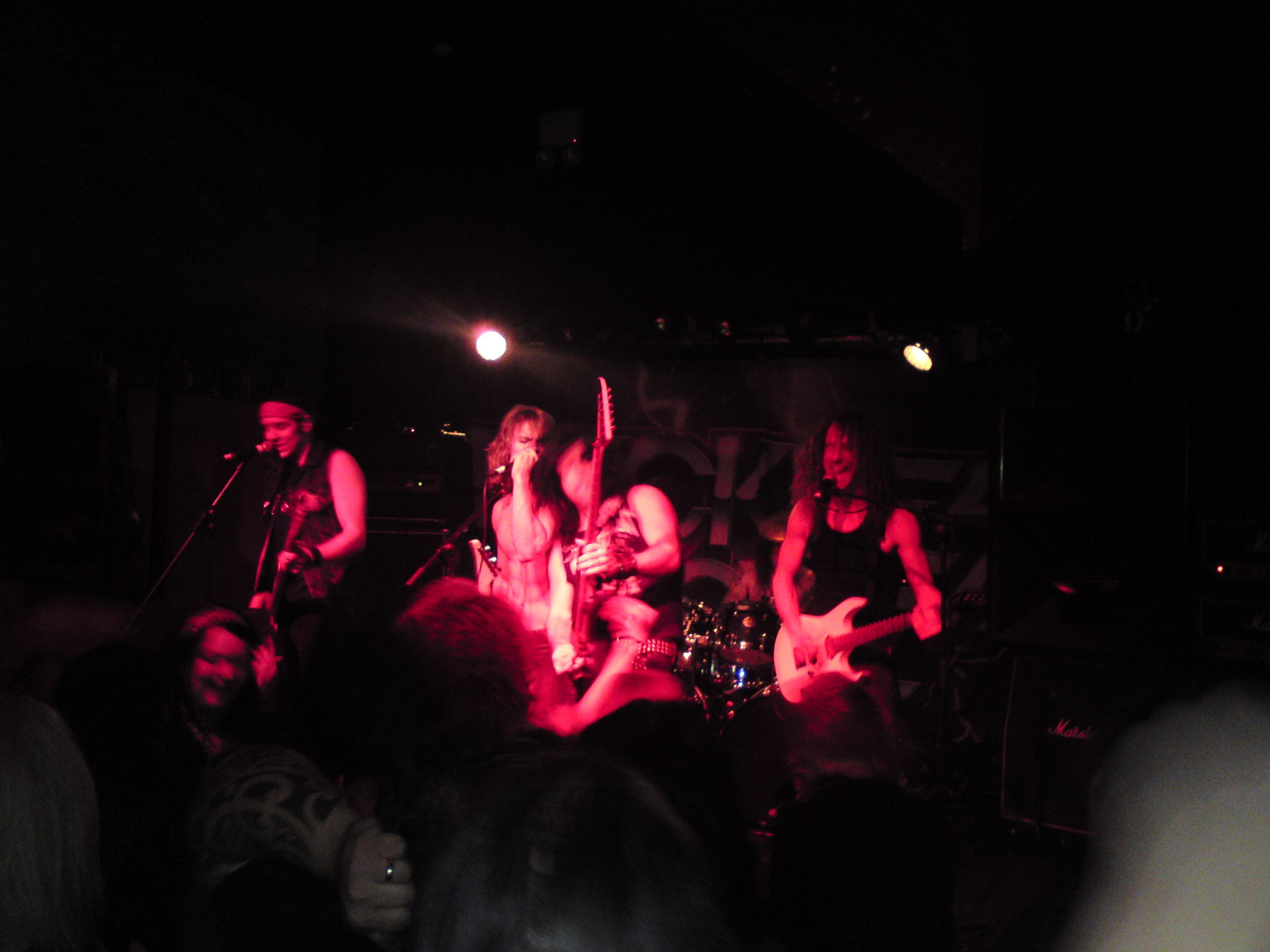 As the chocolate bar fills up with KISS, Motley Crue and Guns N’ Roses t-shirts, patch covered jackets and peroxide haired punters, Dublin local’s Eazy Tyger are opening a night that’s guaranteed to get our rocks off. Lead singer Tommy Rockit struts to the stage like a happy to be here headliner as the band squeeze together in the tiny space between three bands equipment, playing a tight, well rehearsed live show. A crowd helped sing along to Too Fast For Life (Too Young To Die) leads the way for the closing One In The Chamber which sees Tommy jumping from the stage and walking through the crowd getting fans to sing with him. A good show from an undoubtedly up and coming band. In places there’s a little too much style over substance, but things are definitely coming along for Eazy Tyger.