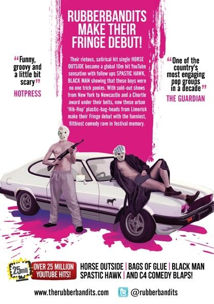 However no doubt The Rubberbandits will tear Edinburgh a new one when they hit the Gilded Balloon venue for 12 nights in August. They need to practice the show before this big experience so will play a preview show in Twisted Pepper on August 2nd.
