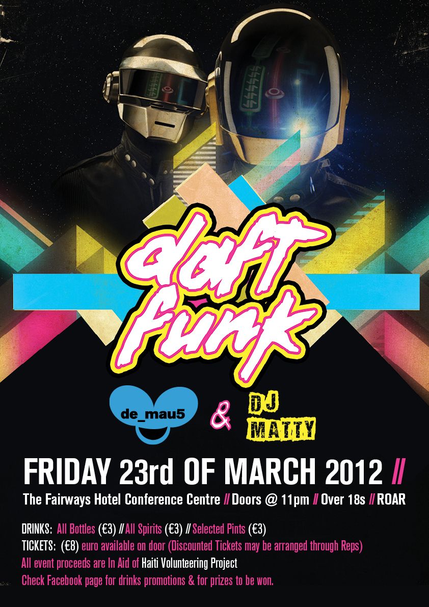 The first is in Dundalk with Daft Funk and De_mau5, two top tribute acts are on the lineup for the event which will be in the Fairway Hotel and Conference Centre on Friday 23rd March. Tickets for this gig are €8 each which is really cheap for these two top tribute acts so it sounds great value for a nights entertainment to support a great cause. Doors open at 11pm.